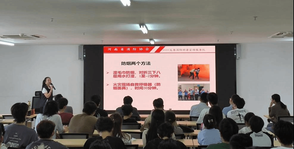 5月9日下午,人工智能学院在弘德楼B310会议室举行消防安全培训暨夏季消防实训演练专题讲座。河南省消防协会义务消防科普宣传讲师严寒应邀到我院作报告,学院师生100余人参加,副院长孔德川主持活动。