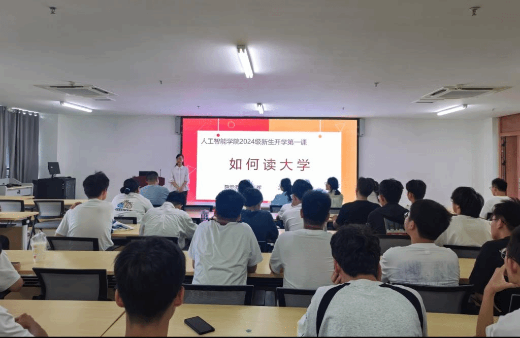 为帮助2024级新生顺利适应大学生活,树立正确的价值观念和奋斗目标,人工智能学院党政领导为新生讲授“开学第一课”。