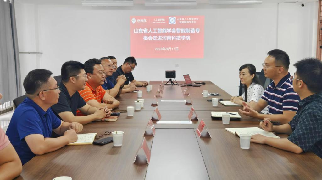 8月17日下午,人工智能学院与山东省人工智能学会智能制造专委会在东校区弘德楼举行校企产学研合作交流活动。山东省人工智能学会副理事长、奇妙智能董事长郑飞,智能制造专委会副主任、山东大学教授陈振学,智能制造专委会学术顾问、山东大学教授贠志皓,智能制造专委会秘书长王刚,智能制造专委会副秘书长、山东交通学院教授何为凯,山东奥网电子科技有限公司总经理梁庆祥、副总经理董信师、研发部主管李化峰,人工智能学院党政领导班子成员、科研团队骨干教师参加交流活动。