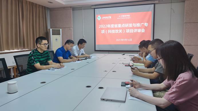 9月16日上午,人工智能学院在电教综合楼803会议室举行了2022年度省重点研发与推广专项(科技攻关)项目评审会,学院院长古乐声、副院长蔡磊、项目评审组成员和相关老师参加会议。会议由学院科研秘书徐涛主持。