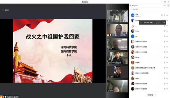 3月31日晚上,国际教育学院团委书记李威通过腾讯会议为学院全体辅导员、入党积极分子和团委学生会成员讲授专题思政课。