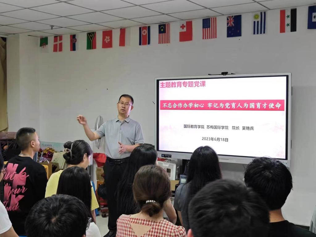为深入开展学习贯彻习近平新时代中国特色社会主义思想主题教育,国际教育学院、苏梅国际学院党委书记张平、院长吴艳兵分别于6月15日和6月18日在六号楼205教室与行政楼903室为学院学生党员和入党积极分子讲授主题教育专题党课。