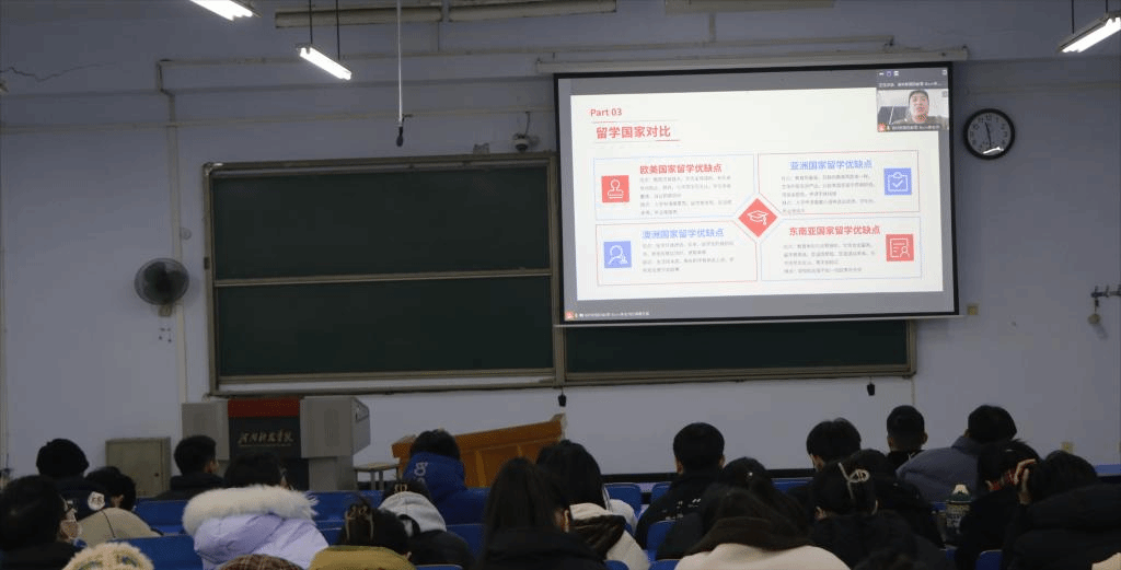 为进一步加强对毕业生服务和培养的力度,引导毕业生科学地做好职业选择和人生规划,国际教育学院于12月26日上午在5合二教室举办线上出国留学指导讲座,2020级大四学生参加了讲座。