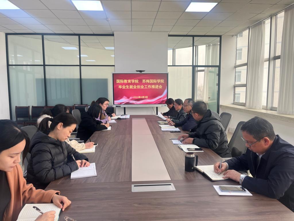 为全面推进学院2024届毕业生就业工作,4月3日上午,国际教育学院(苏梅国际学院)在学院会议室召开毕业生就业创业工作推进会,全体教工参加。会议由院长吴艳兵主持。