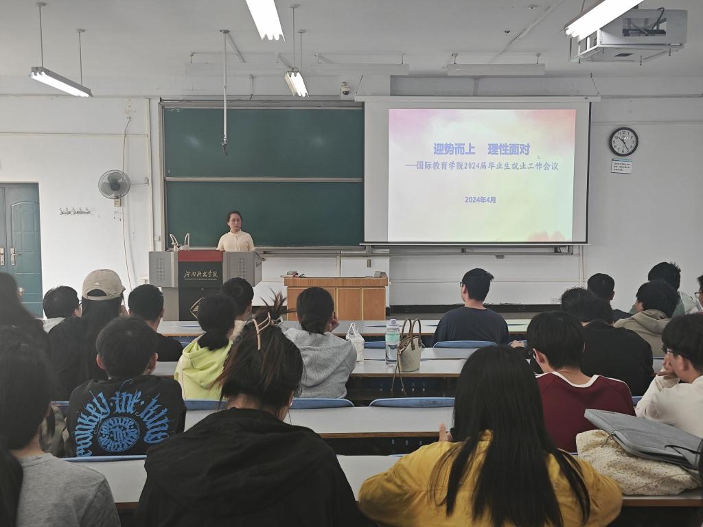 为进一步做好2024届毕业生就业工作,推进毕业生高质量就业,国际教育学院于4月30日、5月7日分批次召开2024届毕业生就业工作会议,学院毕业生近400人参加了会议。