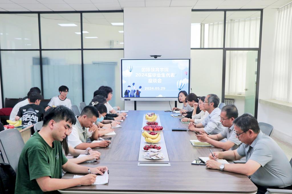 为有序推进2024届毕业生工作,更好地服务学生成长成才,5月30日,国际教育学院在会议室召开2024届毕业生代表座谈会,院党委书记张平,院长吴艳兵,院党委副书记刘凤,副院长沈军、王君君,团委副书记苏娣以及2024届毕业生代表共30余人参加了此次会议,会议由苏娣主持。