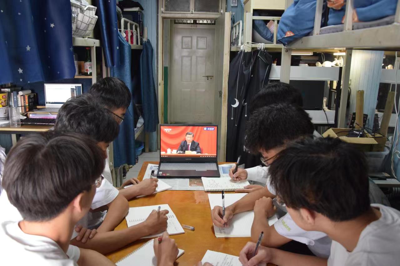 5月10日上午,庆祝中国共产主义青年团成立100周年大会在北京人民大会堂隆重举行。为激励广大团员青年在实现中华民族伟大复兴中国梦的新征程上奋勇前进,国际教育学院组织师生以多种方式收看大会直播。学院副书记兼副院长吴艳兵、辅导员及学生代表在行政楼903集中观看,学院学生以宿舍为单位认真观看。