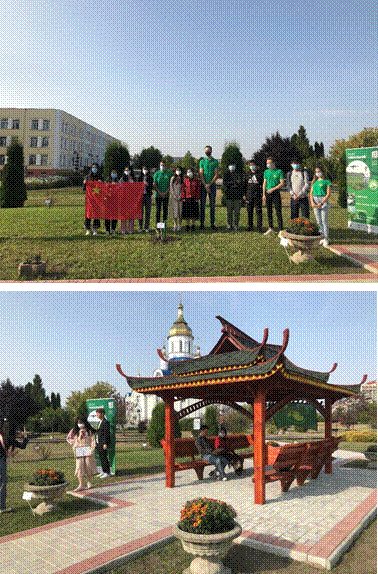 北京时间9月25日下午2点30分(乌克兰时间9月25日上午9点30分),乌克兰苏梅国立农业大学举行中乌友谊亭-“宝塔凉亭”建成揭幕仪式,乌克兰苏梅市副市长、市政人员,苏梅国立农业大学校长、副校长、国际留学生服务中心老师及在校中国留学生30余人参加仪式。我校国际教育学院党政领导、工作人员、中乌联合研究生院19级博士等20余人在行政楼9楼会议室在线观看仪式。