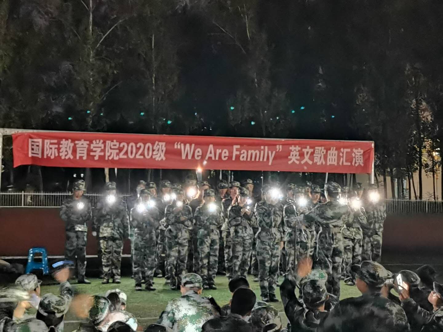 为丰富我院2020级新生军训文化活动,提高英语学习兴趣,让新生更好地融入大学生活。10月22日晚7,国际教育学院在我校西操场举办了一场主题为“We Are Family”的英文歌曲汇演活动。