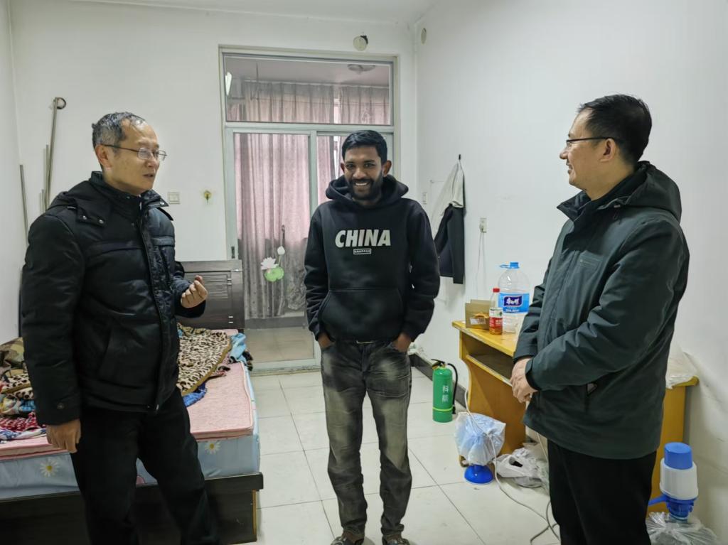 1月24日上午,国际教育学院党委书记张平、院长吴艳兵一行深入学生宿舍,看望并慰问寒假期间留校国际学生。
