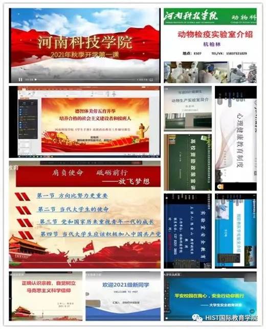 根据《河南科技学院关于做好2021级新生入学教育工作的通知》文件的精神,自9月13日开始,国际教育学院组织2021级全体新生先后通过腾讯会议、抖音直播、钉钉直播、直播回放等线上教育的形式开展了为期6天的新生入学教育课程,内容包括开学第一课视频观看、大学生理想信念教育、专业介绍和实验室功能讲解、安全教育、宗教知识宣传教育、诚信感恩教育,以及《学生手册》中法律法规、思想政治教育、日常管理、学籍及学位管理、资助管理和医疗保险等内容的学习。