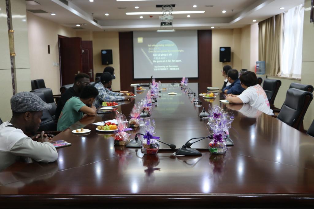 座谈会上,吴院长向国际学生讲解了我国中秋的传统,鼓励学生们多了解中国传统文化和民族风俗,体验节日氛围,向同学们表达了中秋祝福,并与学生们亲切交谈。然后大家观看了介绍中秋文化的视频,并一起朗诵了中国经典古诗《望月怀古》。座谈会上节日氛围浓厚,欢声笑语不断,现场掌声迭起。