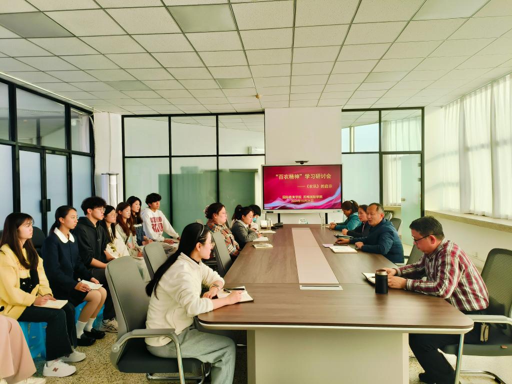 10月24日下午,国际教育学院(苏梅国际学院)在学院会议室召开了“百农精神”学习研讨会。学院党政领导班子、教师以及学生代表参加了此次座谈。会议由学院党委书记张平主持。