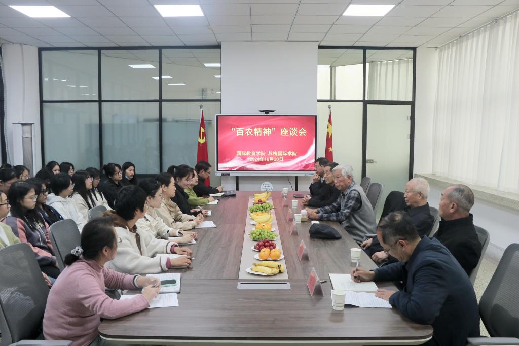 10月30日下午,国际教育学院(苏梅国际学院)在学院会议室召开“百农精神”座谈会。学院全体教师,曾经见证过学校发展的离退休教师及学生代表50余人参加了座谈会。此次座谈会由学院党委书记张平主持。