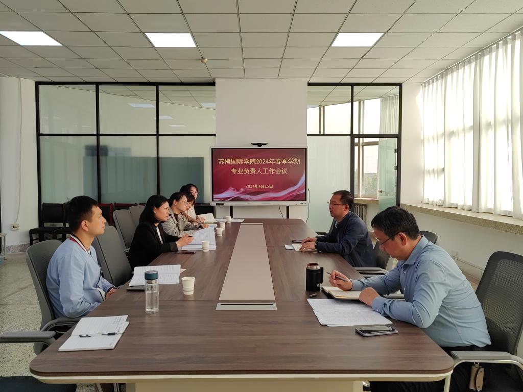 4月15日下午,苏梅国际学院在学院会议室召开了专业负责人工作会议。院长吴艳兵、副院长沈军、农学(中外)专业负责人徐丽娜、国际经济与贸易(中外)专业负责人李华、食工(中外)专业负责人赵圣明、动医(中外)专业负责人陈玲丽及相关教师参加会议。