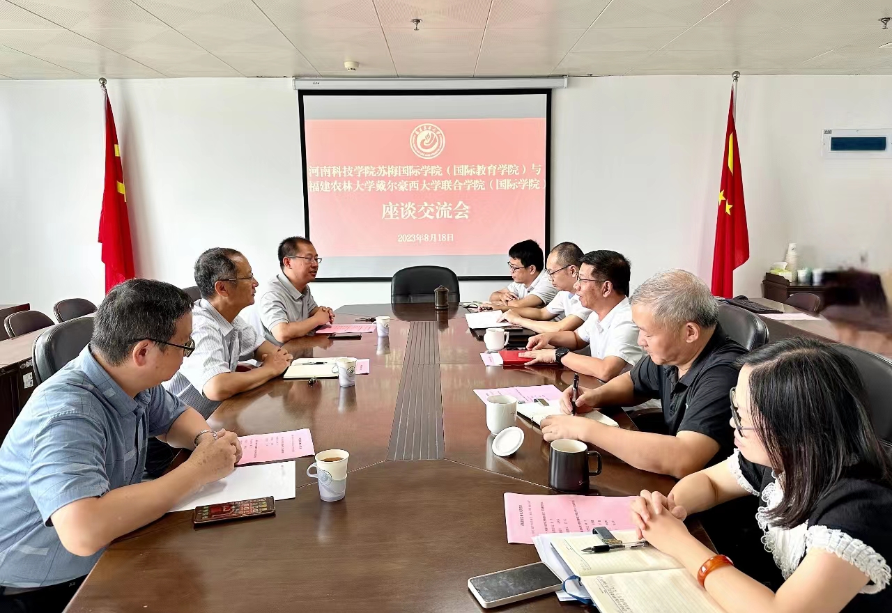 8月18日上午,苏梅国际学院党委书记张平、院长吴艳兵、副院长沈军一行3人到福建农林大学戴尔豪西大学联合学院调研交流。福建农林大学戴尔豪西大学联合学院党委书记林平,院长陈祖建,党委副书记刘敏、李晓辉,副院长张云清出席交流会。
