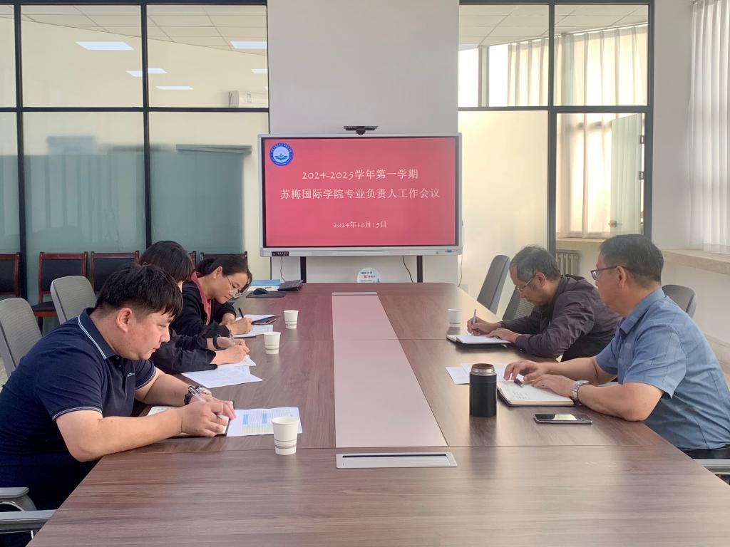 10月15日上午,苏梅国际学院在学院会议室召开了2024-2025学年第一学期专业负责人工作会议。苏梅国际学院党委书记张平、副院长沈军、相关专业负责人等参加了此次会议。会议由沈军主持。