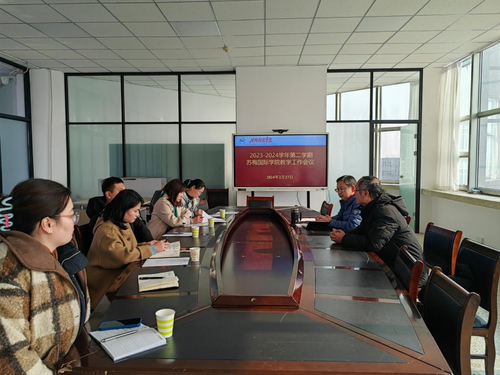 为确保新学期学院教学工作顺利开展,2月27日下午,苏梅国际学院在学院会议室召开了新学期教学工作会议。学院党委书记张平、副院长沈军、农学(中外)专业负责人徐丽娜、国贸(中外)专业负责人李华、食工(中外)专业负责人赵圣明、动医(中外)专业负责人陈玲丽及相关教师参加会议,会议由沈军主持。