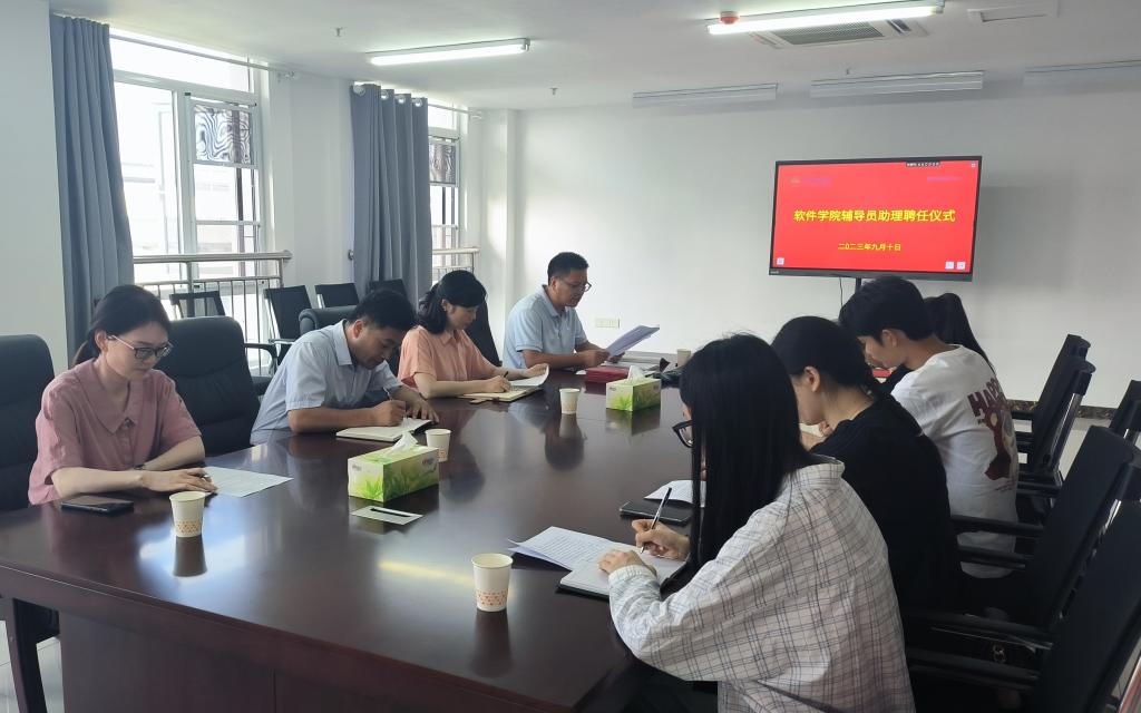 仪式上,余泽通宣读了辅导员助理名单和《软件学院辅导员助理工作职责》,并向五位辅导员助理颁发聘书。马克思主义学院2023级研究生魏挺羽、文法学院2021级学生叶文倩分别代表受聘的辅导员助理进行发言,她们表示一定会发挥好助手和参谋的作用,做到走在前列、做好表率、树好标杆,协助辅导员做好各项工作。