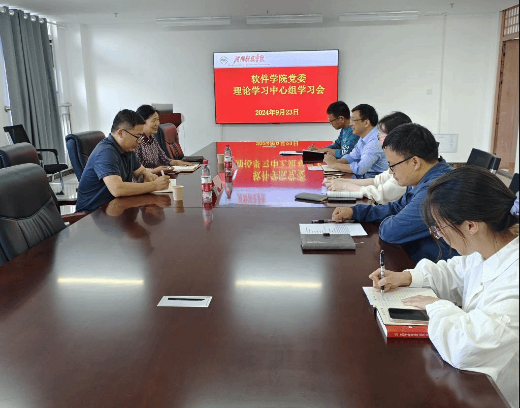 9月23日,软件学院在弘德楼601会议室召开党委理论学习中心组集体学习会,中心组成员参加会议,会议由学院院长古乐声主持。按照学校安排,机关党委书记宋荷英、党委宣传部理论教育科科长杨运华对会议进行了巡听。