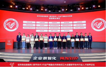 软件和信息服务(数字技术)行业产教融合共同体由用友网络科技股份有限公司、北京航空航天大学、北京电子科技职业学院牵头成立。截至目前,首批理事单位成员共有来自全国各地的300余所高校、中高职院校、行业协会、企业及社会组织。