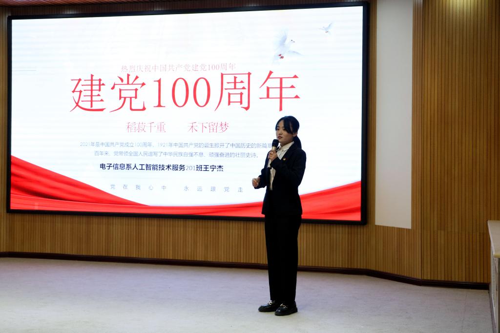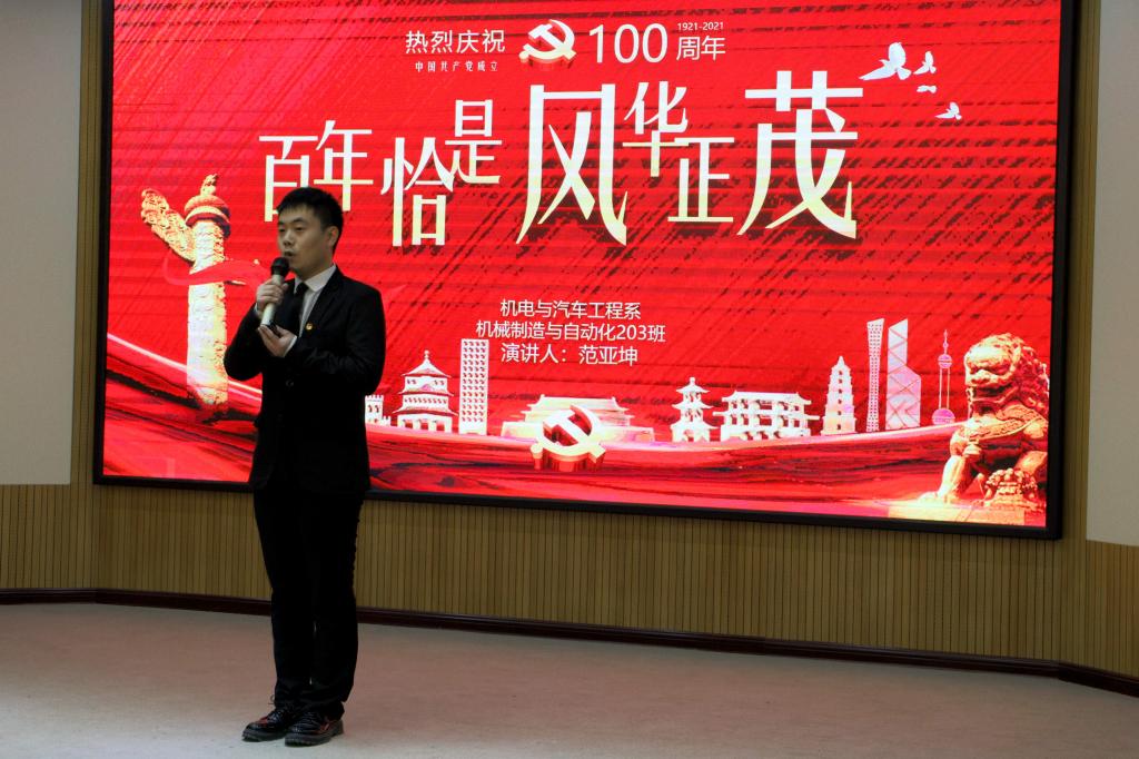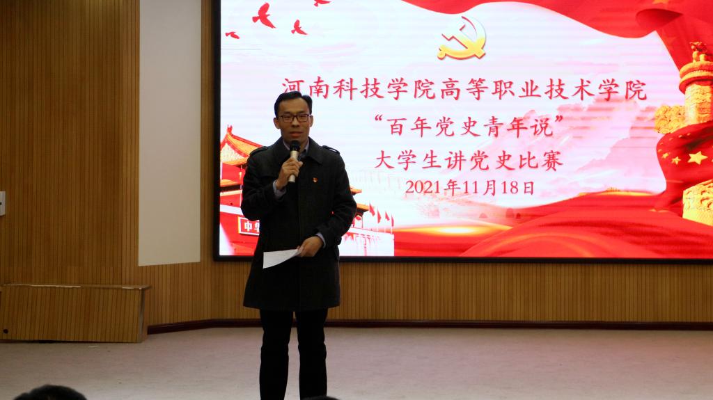 11月18日下午,高等职业技术学院举办的“百年党史青年说”大学生讲党史比赛在综合楼四楼报告厅拉开帷幕,经过各系推荐选拔,12名选手参加了比赛,学院党政领导班子成员、师生代表40余人现场观看比赛。