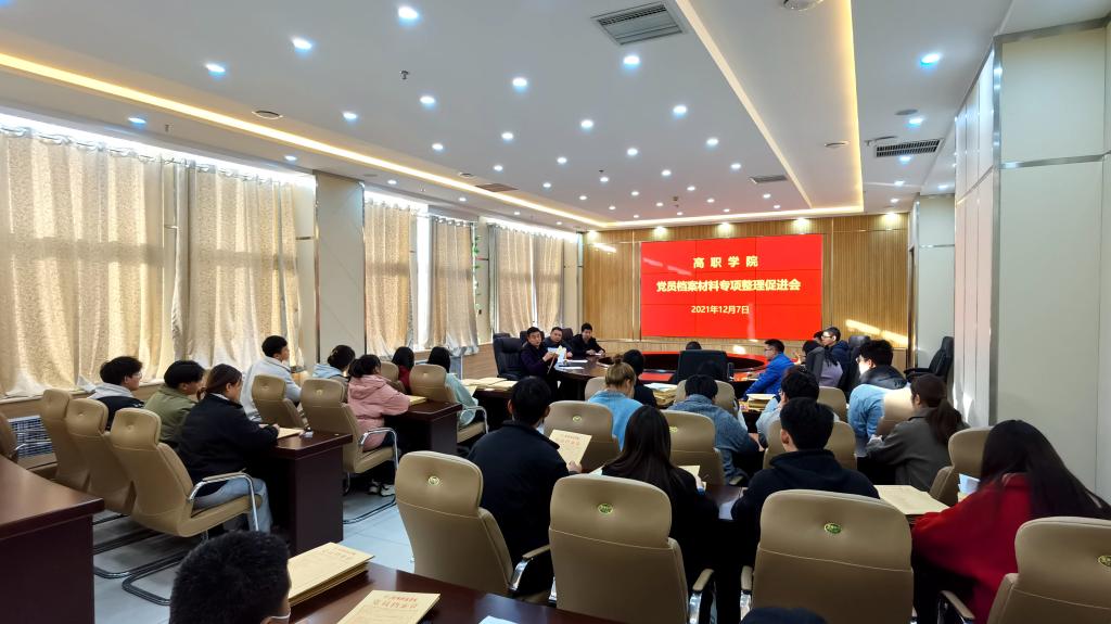 为进一步规范党员发展材料填写,12月7日下午,高等职业技术学院党委在综合楼8楼圆桌会议室,召开党员发展材料专项整理工作推进会。党建工作办公室负责人、党建组织员、支部组织委员和部分学生党员约40人参加。会议由院党委副书记申长奎主持。