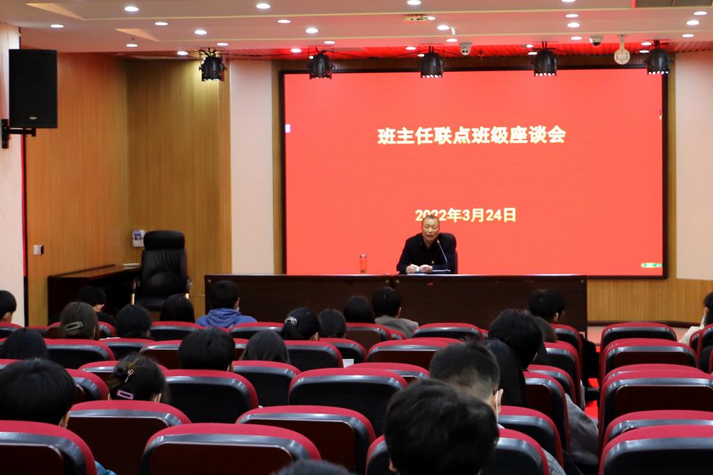 作为联点班级的班主任,两位院领导从维护师生员工身体健康和校园安全稳定的角度出发,就当前疫情防控形势、上级部门和学校有关要求、学院疫情防控工作安排等,向同学们作了详细介绍,并提醒大家认真遵守疫情防控工作规定、科学正确做好个人防护、自觉养成文明行为习惯,努力以实际行动强化社会责任意识、展示青年担当作为形象。在轻松愉快的氛围中,学院领导就同学们关心的有关学习和生活问题进行了充分交流,并就如何及时、妥善解决当前生活中存在的实际困难作了认真回答。