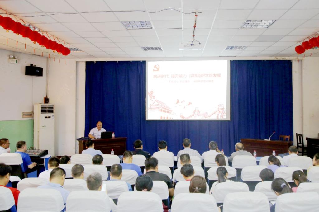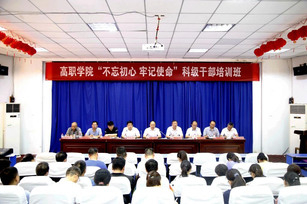 7月21日,高职学院“不忘初心 牢记使命”科级干部培训开班仪式在报告厅举行,学院党政领导及正科级干部、各党支部书记、主持工作的部门负责人共计40人参会。学院党委副书记孙敬坤主持开班仪式。