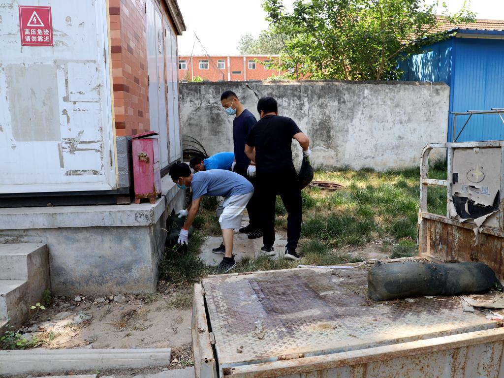 演练现场之电箱底部沙袋堆码
