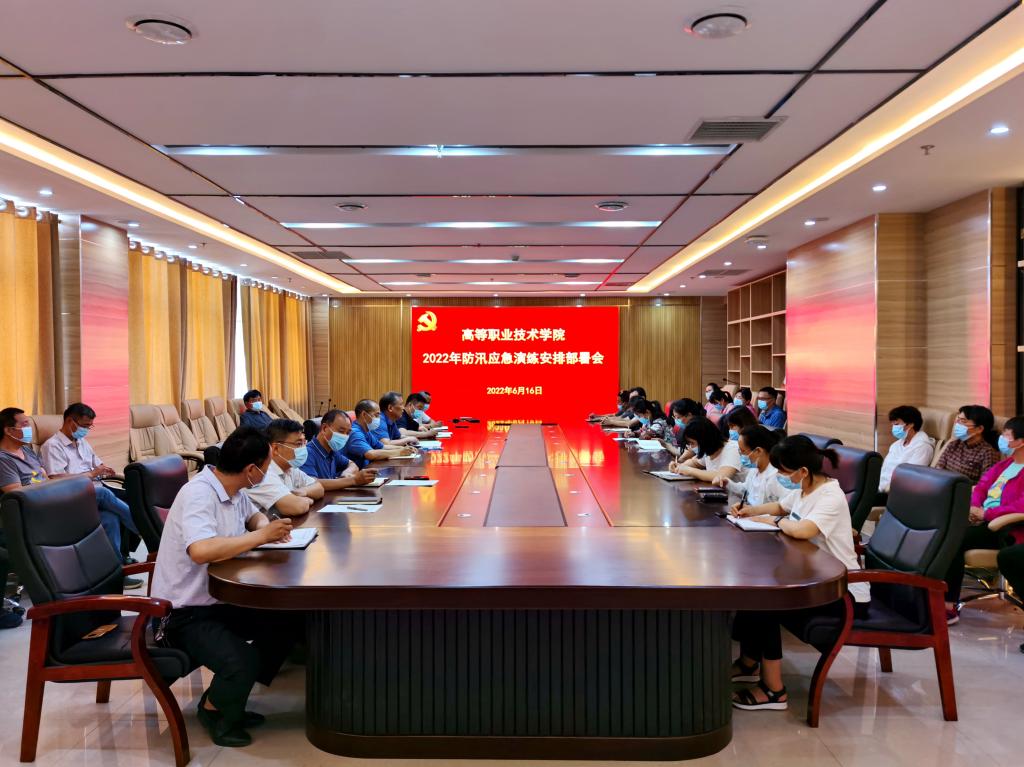 在综合楼十楼会议室举行了2022年防汛应急演练启动仪式。学院领导班子出席会议,所有正科级干部参会。院长乐玉忠传达了《高等职业技术学院2022年防汛抢险演练方案》,对今年的防汛工作进行了具体的安排部署,并指出,要提高思想认识,深刻吸取郑州“7.20”特大暴雨灾害追责问责案件教训,增强风险意识和底线思维,从严从实抓好防汛备汛各项工作;要压实工作责任,务必确保预案完善、落实到位,加强预警、提前避险,强化实战演练,把防汛工作责任和任务落到实处。