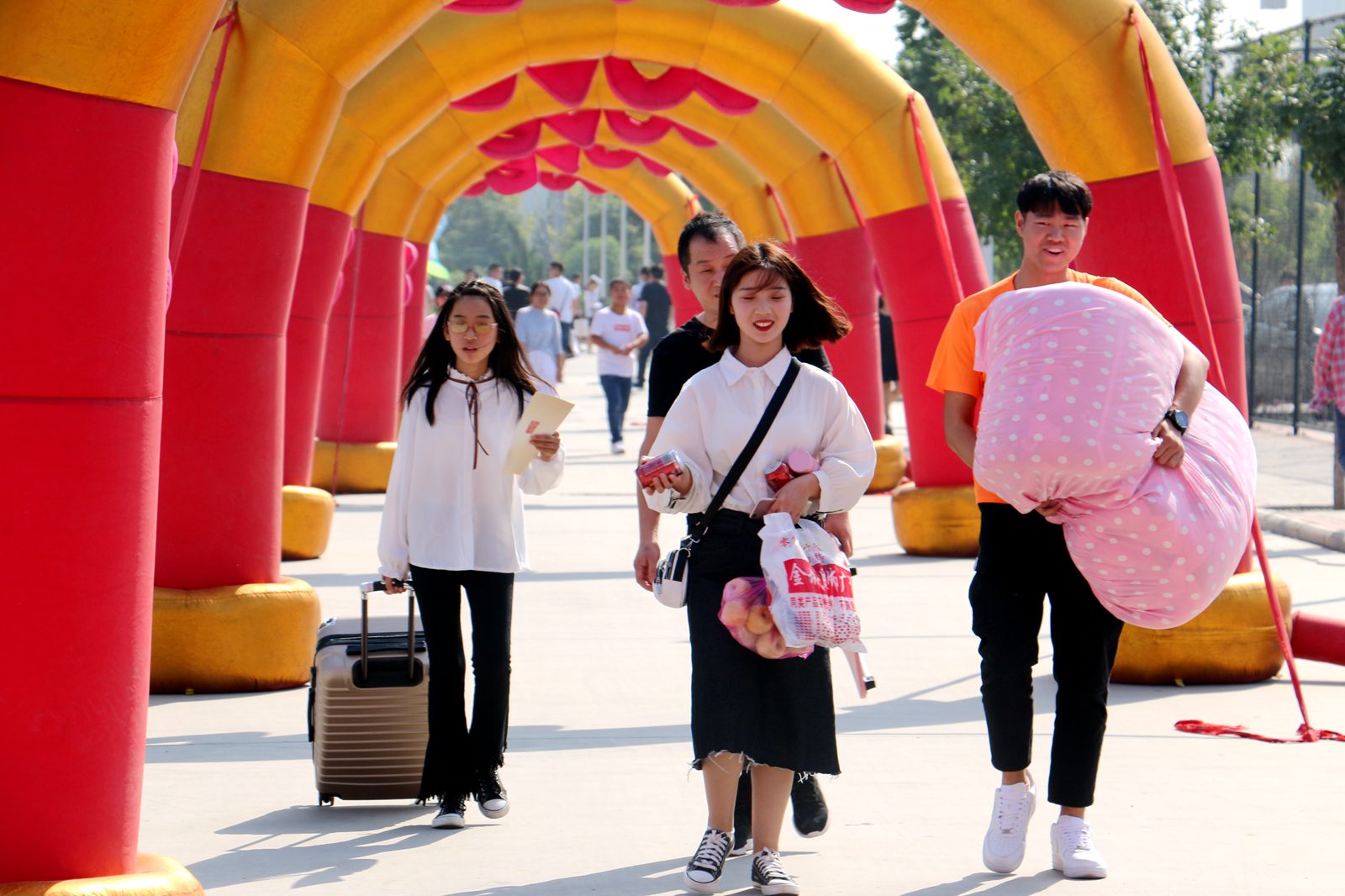 新同学在志愿者的带领下一同前往宿舍 |