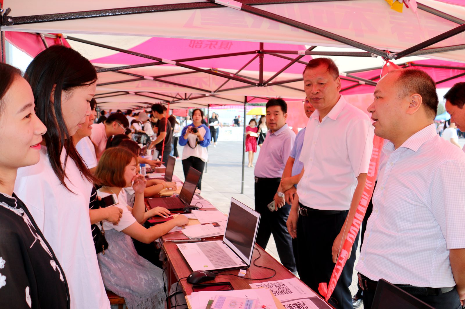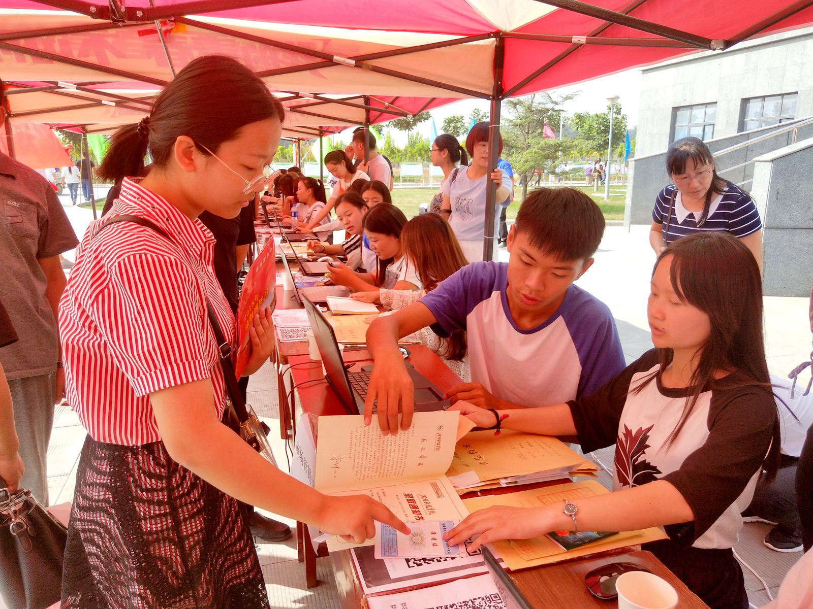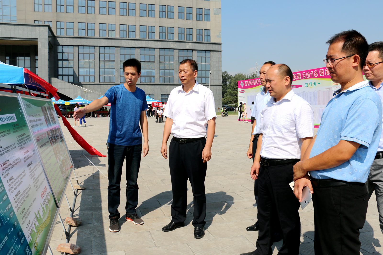 学院领导查看迎新各项细节 |