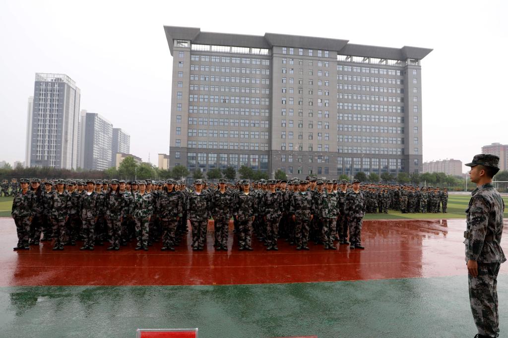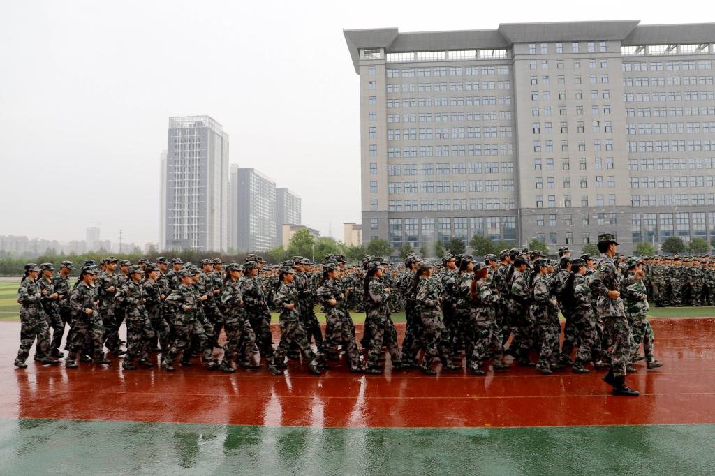 伴随着雄壮激昂的国歌,队列会操正式开始,10个军训连,依次按照军训考核要求,展开会操表演,接受考核检阅。立正、稍息、踏步、跑步,同学们规范的动作、整齐的步伐、响亮的口号、饱满的热情赢得了阵阵掌声,不仅展现了我院大学生昂扬向上的精神风貌,也彰显了本次军训的成果。