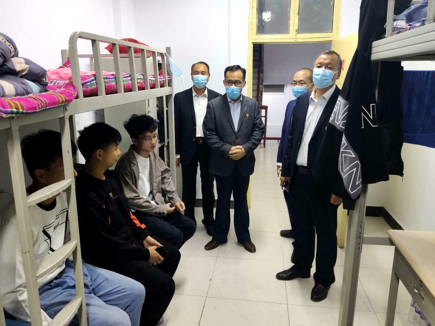 为迎接2020级新同学,10月8日晚,高职学院党政领导班子成员王吉田、乐玉忠、孙敬坤、宋合成及各系书记、辅导员们带着全院教师的殷切关怀深入走访新生宿舍,与新生进行了面对面的交流沟通。