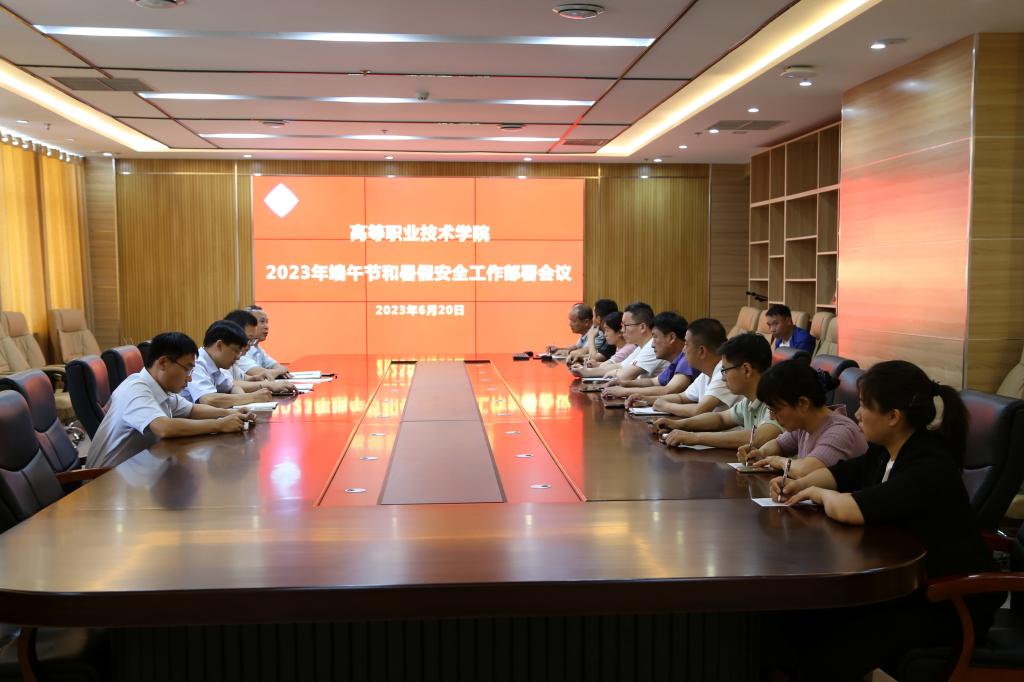 6月20日上午,高等职业技术学院在综合楼十楼第一会议室召开了2023年端午节和暑期安全工作部署会议,学院党委副书记杨大光、张高峰,副院长王铁固、张兆沛,相关职能科室负责人十余人参加了会议。会议由王铁固主持。