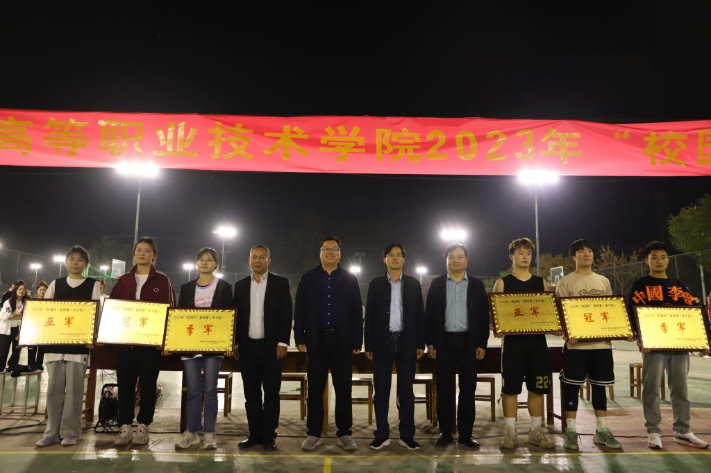 10月24日晚,高等职业技术学院2023年“校园杯”篮球赛闭幕式在东篮球场举行,学院党委副书记杨大光、张高峰,副院长王铁固、付俊辉及团委、学生科、各系党支部书记、辅导员、运动员等200余人参加了闭幕式。本次比赛由学院团委、学生科、体育教学部联合举办。