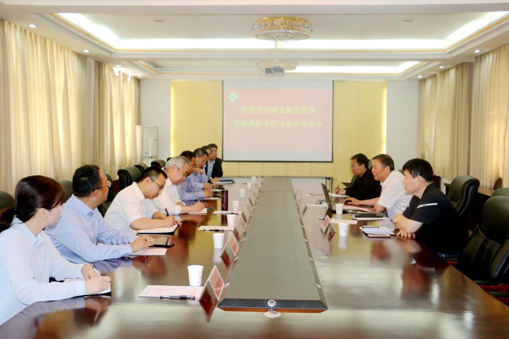 5月17日上午,河南建业地产集团、教育集团、新生活集团一行9人,莅临高职学院洽谈合作办学事宜。我院在行政楼第二会议室举行了交流座谈会,院长乐玉忠、副院长梅俊杰、吴艳兵出席会议。