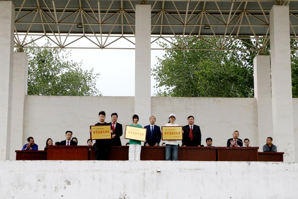 学院党委副书记张高峰宣布获得本次运动会体育道德风尚奖的代表队名单。艺术系学生代表队、生命科学技术系学生代表队、经济与管理系学生代表队荣获道德风尚奖。