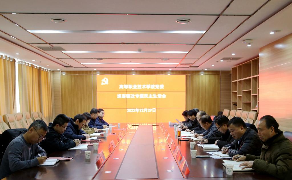12月29日上午,高等职业技术学院在综合楼十楼第一会议室召开巡察整改专题民主生活会。第五轮校内巡察第二巡察组组长张忠迪、副组长陈腾,党委组织部副部长李鑫良,纪委(监察专员办公室)第一纪检监察室主任李岩,巡察工作办公室副主任李斌,巡察组联络员申冲到会指导。会议由学院党委书记孙敬坤主持。