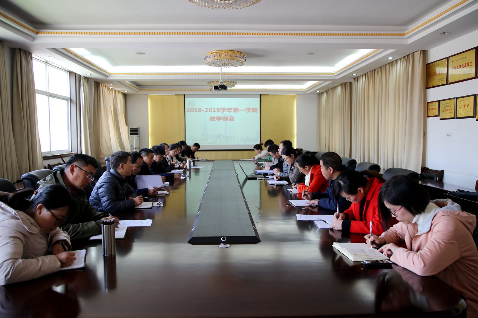 为加强对教学过程的监控和管理,及时解决教学工作中出现的新情况、新问题,促进教学管理工作的规范化、制度化,提高教育教学质量,高职学院每周定时召开教学工作例会。11月19日上午高职学院在行政楼第二会议室召开教学工作例会,安排部署近期教学管理相关工作。教务科、教学督导科、招生就业办、学生科及各系部负责人参加会议。副院长吴艳兵主持会议。