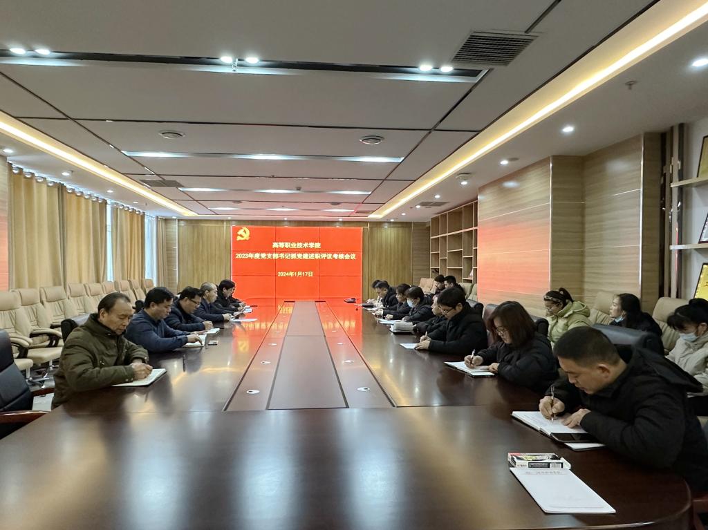 1月17日上午,高等职业技术学院2023年度党支部书记抓党建述职评议考核工作在综合楼十楼第一会议室召开。学院党委委员、党建组织员、各党支部书记及组织委员共20余人参加会议。会议由学院党委副书记杨大光主持。