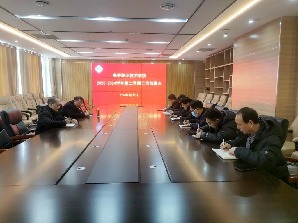 2月21日下午,高等职业技术学院在综合楼十楼第一会议室召开2023-2024学年第二学期工作部署会,领导班子全体成员参加会议。会议由院长乐玉忠主持。