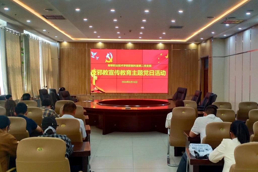 5月16日下午,高等职业技术学院以党支部为单位,组织全体教职工开展“崇尚科学 反对邪教”主题党日(扩大)学习活动。