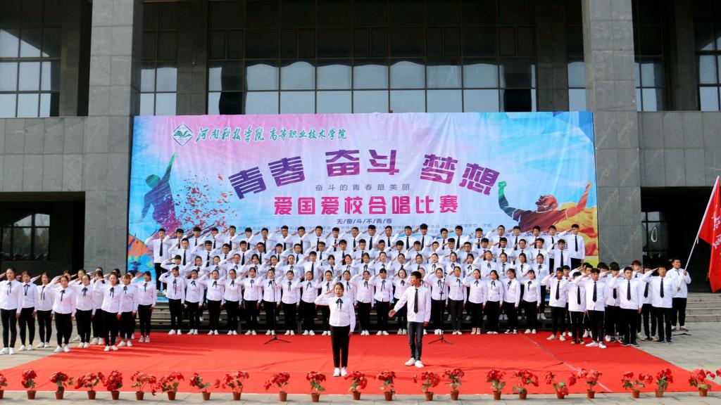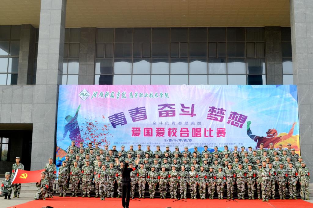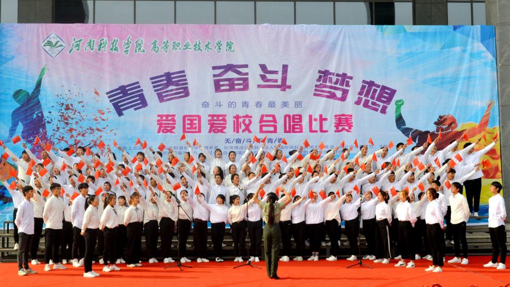 为庆祝改革开放40周年,弘扬爱国精神,增强我院青年学子与祖国共奋进、与学院同发展的精神面貌,11月8日中午,由河南科技学院党委宣传部主办、高等职业技术学院院团委承办“青春·奋斗·梦想”主题的爱国爱校合唱比赛在综合楼前举行。出席此次活动的有高职学院党委书记高跃、院长乐玉忠、副书记杨国友、孙敬坤、副院长宋合成、吴艳兵、王铁固以及各科室、系负责人。全院两千余名师生共同观看了比赛。