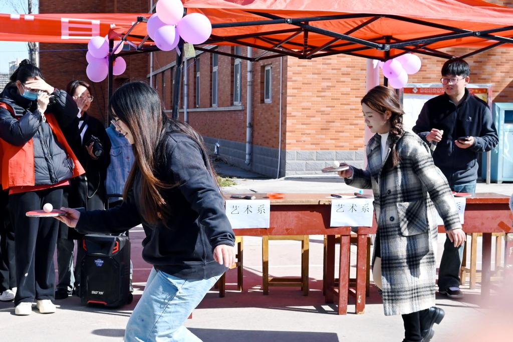 活动需要参加“磁力对战”的脑力比赛、“夹乒乓球”的协调对战、“知识竞答”的头脑风暴、“报纸拔河”的趣味比拼、“猜红歌”的回味经典红歌、“水杯吹乒乓球”的极限挑战、“你画我猜”的默契合作后,获得通关奖章,最终用于兑换手工奖品“工艺手链”“干花团扇”。各竞赛活动和奖品分别由各系和院学生会提供。活动现场,师生们积极参与,场面热烈、欢声笑语不断。