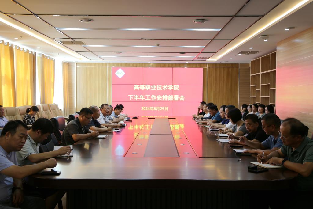 8月29日下午,高等职业技术学院在综合楼第一会议室召开下半年工作安排部署会。学院党政领导班子、正科级以上干部四十余人参加会议。学院党委书记孙敬坤主持会议。