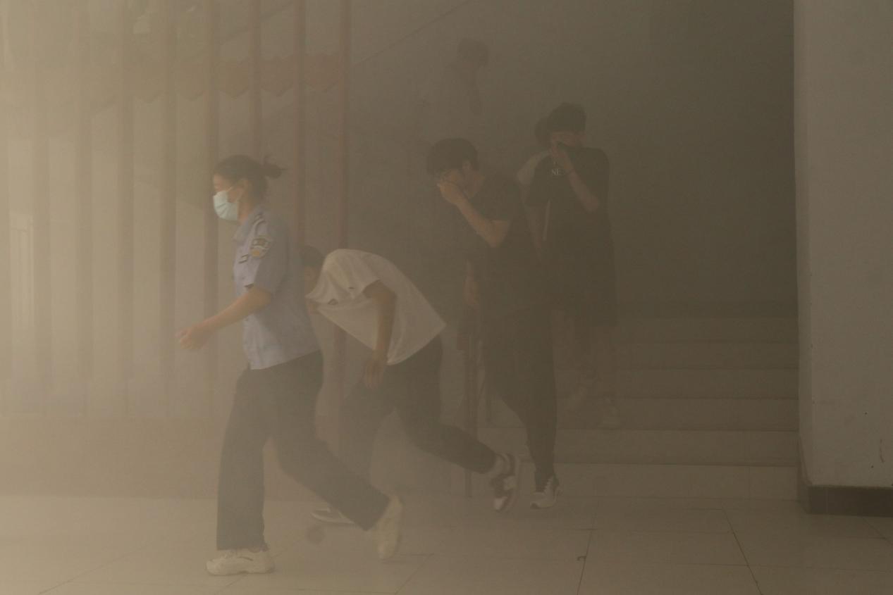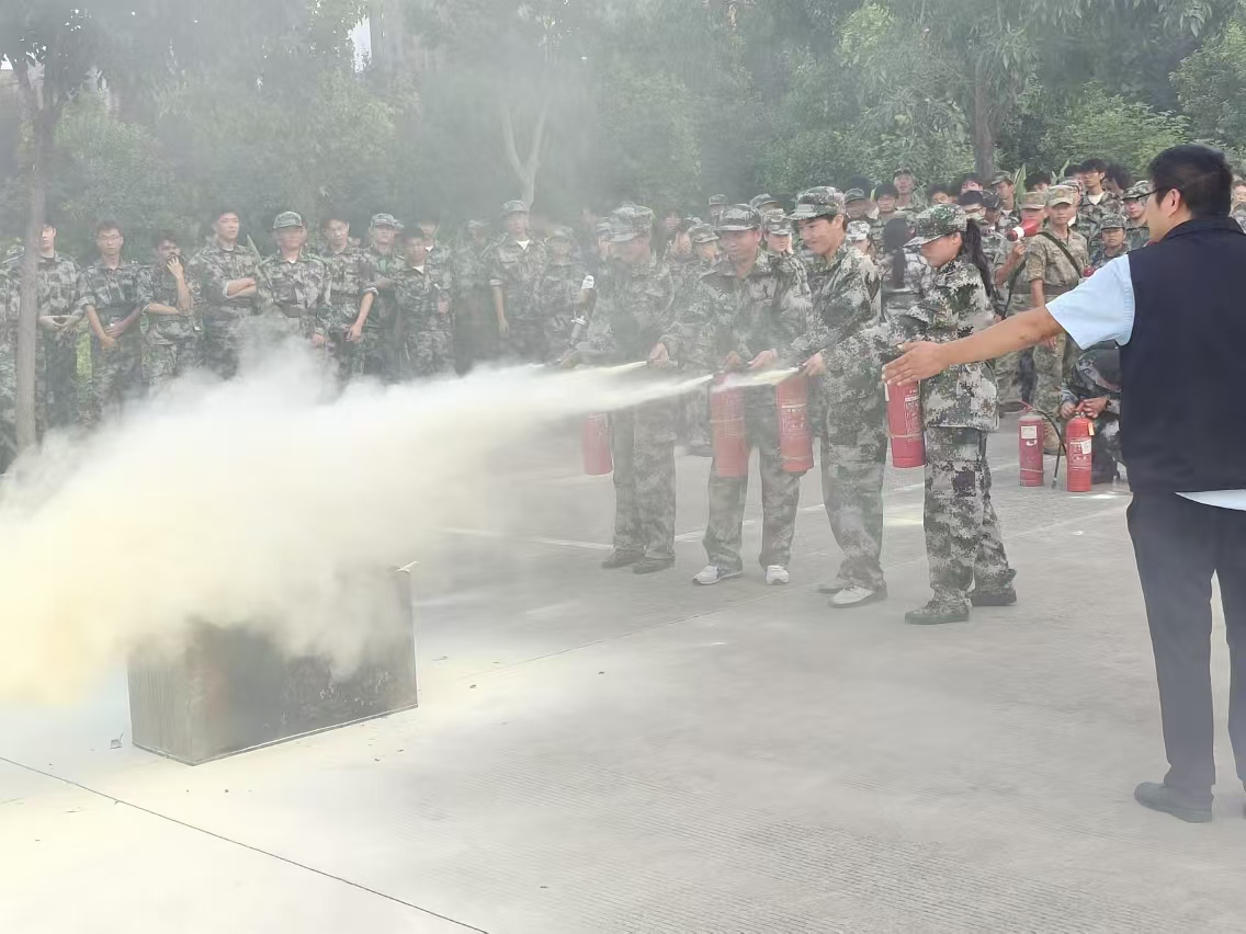 随后,保卫科和学生科组织2024级新同学及教职工参加灭火器操作方法演练和逃生演练。