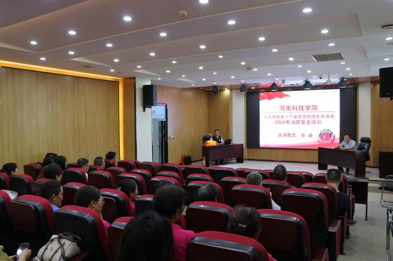 9月20日,为提高学院师生的消防安全和责任意识,进一步加强消防安全工作,高等职业技术学院分别在足球场和综合楼四楼报告厅对2024级同学和教职工进行消防安全知识讲座。讲座特邀辉县市消防救援大队张瑞芳警官和张迪警官进行讲解,由副院长张兆沛主持。