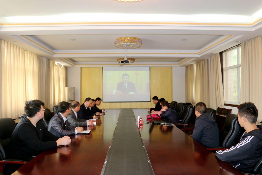 领导班子、办公室、团委、学生科和思政课教师在第二会议室集中观看直播 |